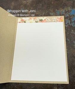 Card Insert: For the inside of your card, cut a piece of Basic White 4 X 5 ¼. Cut a piece of print paper used on the front of your card ½ X 4. Attach to the top of the card insert. Stamp a sentiment or write a note before attaching this piece inside your card.