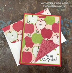 This is a second card I made using the same directions. Card base is Real Red, card mat is Granny Apple Green, print paper is apple print from Fruit Salad paper pack.