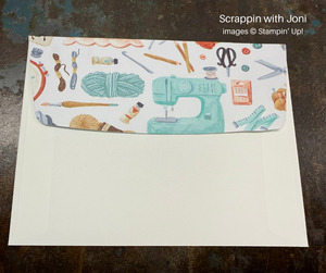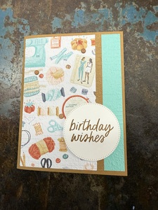 Hobby Haven Designer Series Paper offers some fun print papers. This card uses a paper that features items from the sewing & knitting. There is also paper that features books and one that features cooking. I plan to make the same card with each paper.