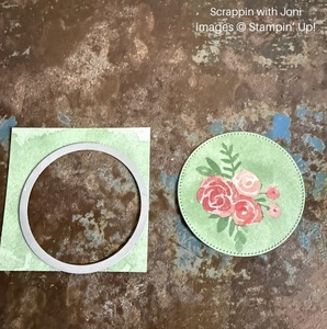 Use the largest circle in the Stylish Shapes dies to cut a floral image from paper in the Love Notes paper pack.