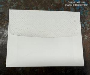 Envelope Flap: Emboss the envelope flap with the Beautiful Pattern embossing folder.