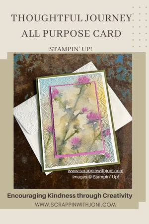 Thoughtful Journey is a beautiful pack of 6X6 papers. I added the Deckle Rectangle dies, the Distressed Tile embossing folder to the Thoughtful Journey paper to create this All Purpose card. I can use this card for a variety of reasons. I will add the sentiment depending on what I need.