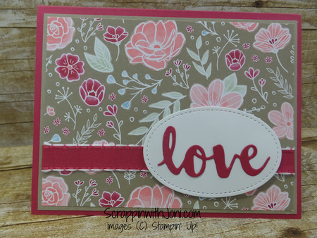 I am LOVING the beautiful paper that comes in the Everything is Rosy medley of products. It is had to see how pretty this paper is from the picture. The ribbon and stamp set are part of the medley.