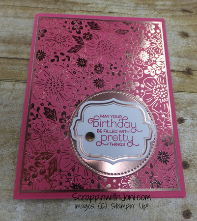 Products from the Everything is Rosy Product Medley were used in this beautiful card. This card is truly even more pretty in person.