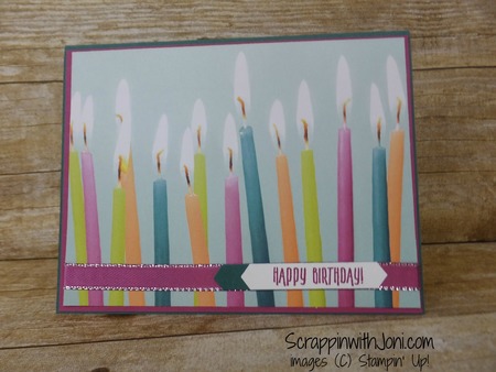 Sometimes the paper just makes your card. With this great candle paper, I just added some coordinating color in the mat and ribbon and I had a fun birthday card.
