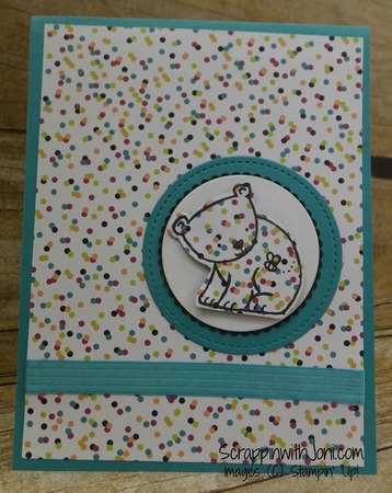 Baby cards and dots, a perfect match. This would also be a cute card for 1st birthday. The colors would work for either boys or girls.