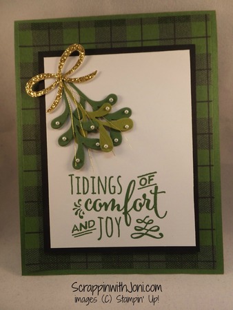 14 Sep 16 Tidings of Comfort & Joy in green plaid Green plaid paired with greens speaks Christmas to me. view instructions -> view products and instructions-> Garden Green 8-1/2" X 11" Cardstock 102584 Basic Black 8-1/2" X 11" Cardstock 121045 Whisper White 8-1/2" X 11" Cardstock 100730 Old Olive 8-1/2" X 11" Cardstock 100702 Gold Glimmer Paper 133719 Christmas Pines Photopolymer Stamp Set 142049 Pretty Pines Thinlits Dies 141851 Garden Green Classic Stampin' Pad 126973 Gold Metallic Thread 138401 Pearl Basic Jewels Embellishments 119247 Stampin' Dimensionals 104430 Warmth & Cheer Designer Series Paper Stack 141991 Mini Glue Dots 103683 Comment Print
