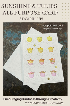 What would you use this pretty card for? Using the Sunshine & Tulips die and a paper from Splash of Sparkles paper you can easily make this card. I love to have cards available that I can add a sentiment to make the kind of card I need at the time.