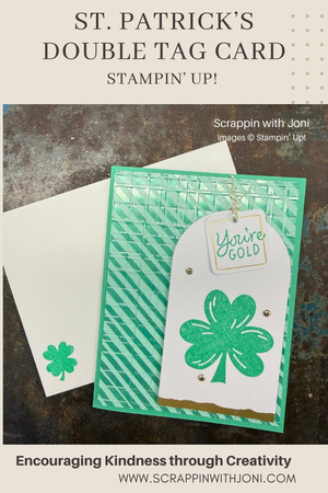 I love the mix of specialty paper with the gold edge tags to make a St. Patrick’s Day card.