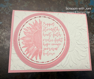 October is Breast Cancer Awareness month. We al know someone impacted by breast cancer. At class in October this was a bonus card anyone who purchased a card class could make this additional card as well.