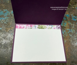 I love making All Purpose cards, when I need a card I add the sentiment needed. This card design could be used for a variety of reasons. Isn’t that floral print pretty?