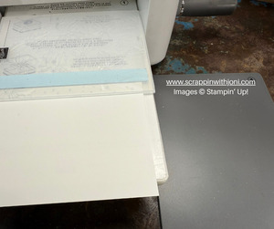 Card Insert: For the inside of your card, cut a piece of Basic White 4 X 5 ¼. Emboss the top ½’ of the white card insert with the Jolly Holly embossing folder.